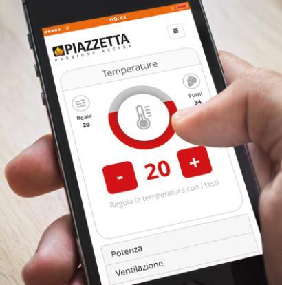 Con la app My Piazzetta es posible monitorizar el funcionamiento con pellet y madera y programar encendidos y apagados incluso a distancia, utilizando el dispositivo WiFi de serie. La app My Piazzetta también se puede utilizar cómodamente en casa vía Bluetooth.