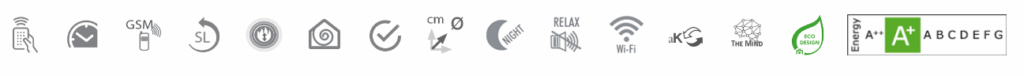 • Hogar de fundición Resistencia cerámica • Salida humos posterior Ø 8 cm, macho • Programación diaria / semanal • Función EASY TIMER • Función RELAX (aire caliente desactivable) • Alarma reserva de pellet • Radiomando “Mind remote” • Sistema The Mind WI-FI integrado • Sistema Leonardo • Aire caliente canalizable posterior Ø 6 cm, ajuste independiente, por control remoto, del ventilador frontal y del ventilador canalizado termostatizable mediante instalación sonda ambiente opcional.